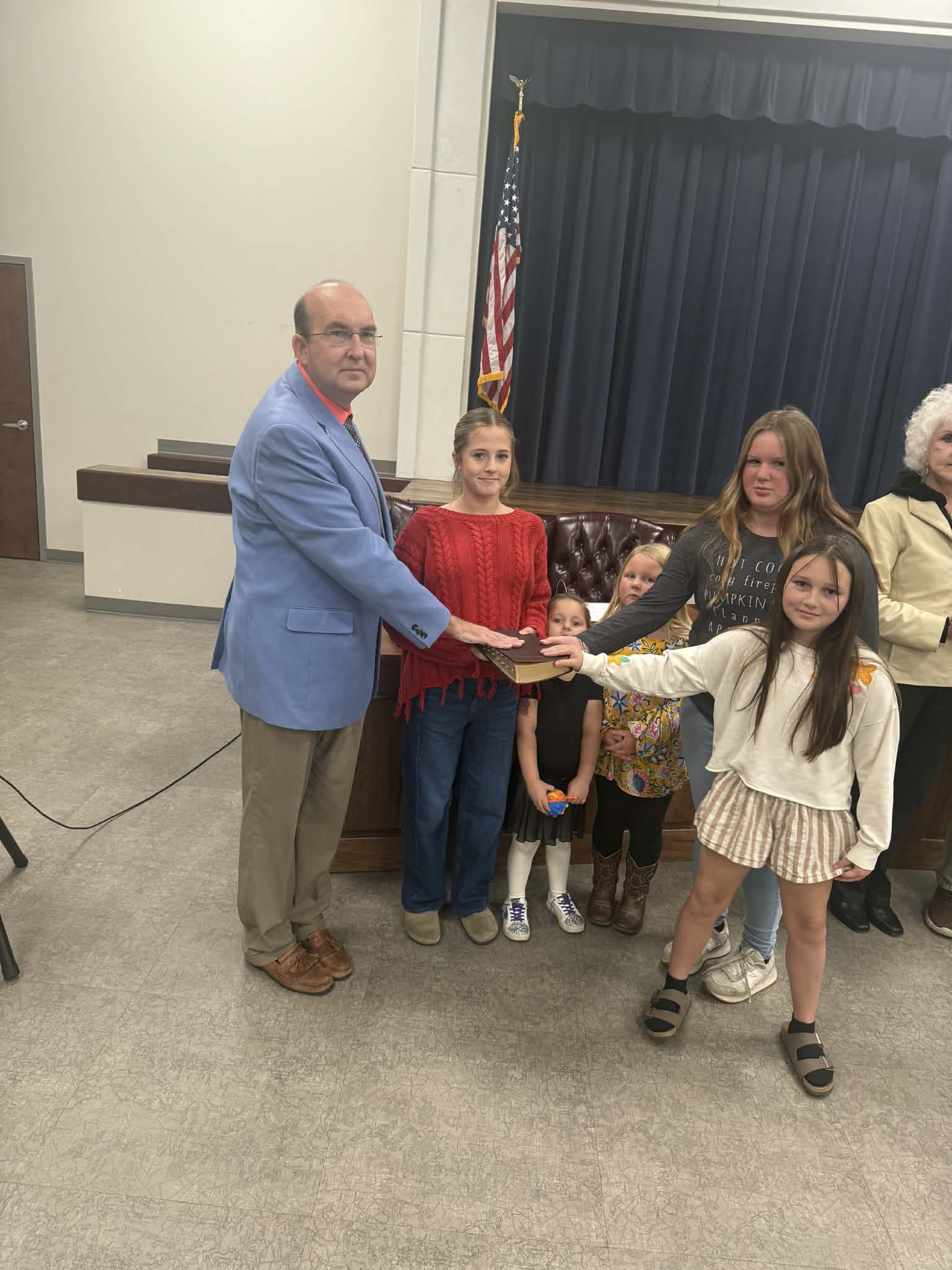 The ceremony included Scripture readings and prayers from Pastor Justin Moore of Tates Chapel Baptist Church and Pastor Shane Swafford of the Church of God, adding a reflective and encouraging tone to the proceedings.