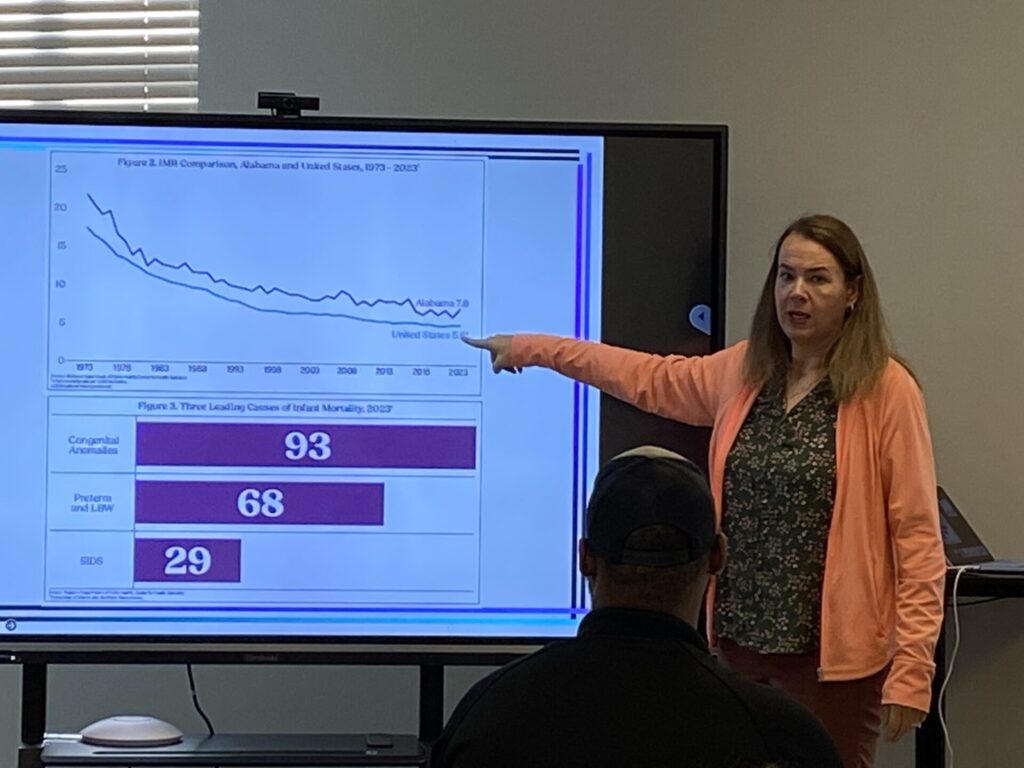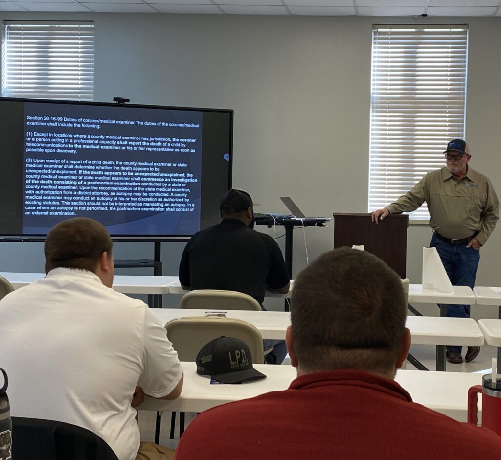 District Attorney for Alabama’s 9th Circuit, Summer Summerford addressed participants regarding legal considerations in infant death cases. Coroner Lina Evans, RN, MSFS, BSN, BS, F-ABMDI, from the Shelby County Coroner’s Office and President of the Alabama Coroners Association, led the training. Evans emphasized the importance of thorough and consistent investigations, noting that Alabama has the third-highest rate of sudden infant deaths in the United States.