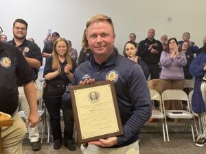 The meeting then paused for a surprise recognition ceremony. Captain Parker presented Chief Johnson with the J. Edgar Hoover Memorial Gold Medal, awarded by the American Police Hall of Fame for distinguished public service. The award highlighted Johnson’s efforts modernizing the department, securing vehicles and equipment, expanding mental health crisis resources, and strengthening community relationships.