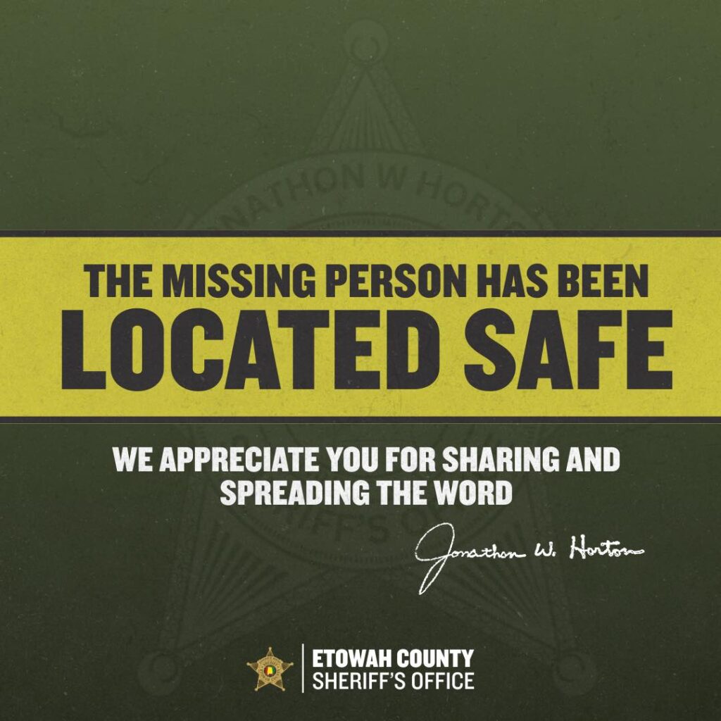 ETOWAH COUNTY, Ala- The Sardis Police Department reports that Christopher Samuel Soule has been located safe.