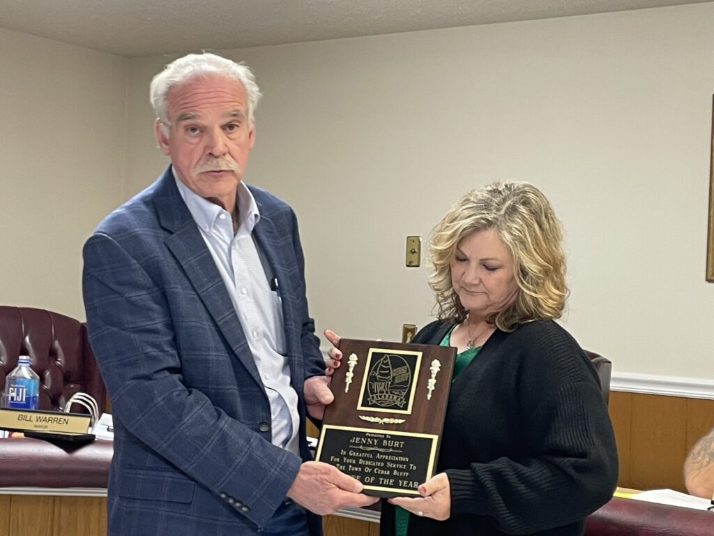 The council also presented annual awards: Amanda Sprayberry was named Firefighter of the Year, Police Chief Jeremy Stepps was named Officer of the Year, and Jenni Burt received Employee of the Year.