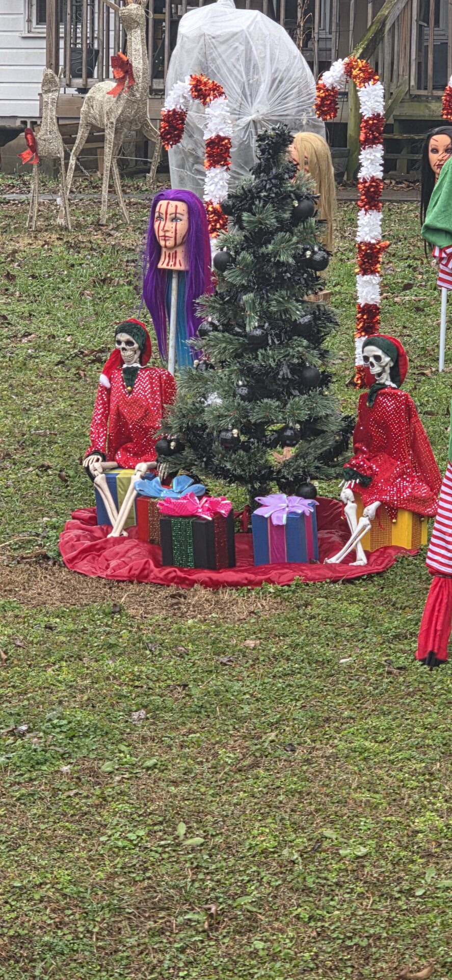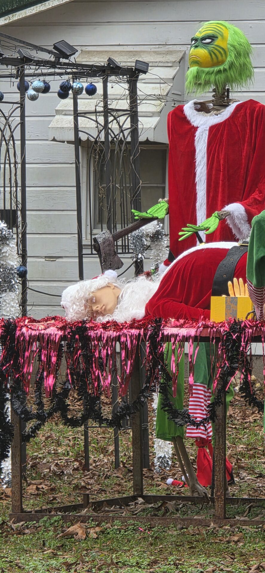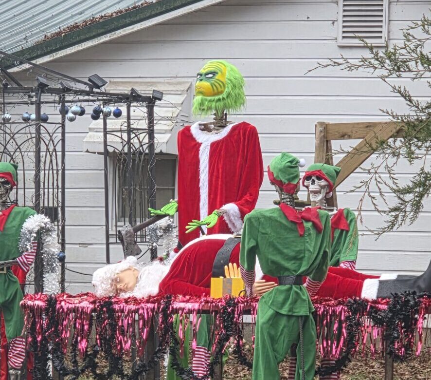 “I am reaching out to bring attention to a disturbing Christmas display currently set up in Rock Run, Alabama on County Road 29,” the listener wrote. “The scene depicts Santa being killed by the Grinch and includes multiple decapitated female heads. This is extremely inappropriate and disturbing, especially with a Christmas parade scheduled for this Saturday where many families and children will be present. This type of display has no place in a family-friendly community event, and it’s troubling that children may be exposed to such violent imagery during the holiday season. I hope this can be addressed quickly for the safety and well-being of this community.”