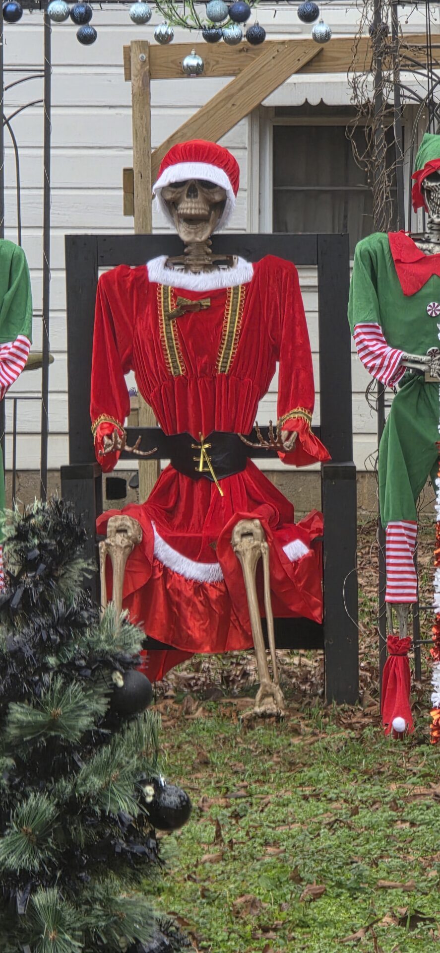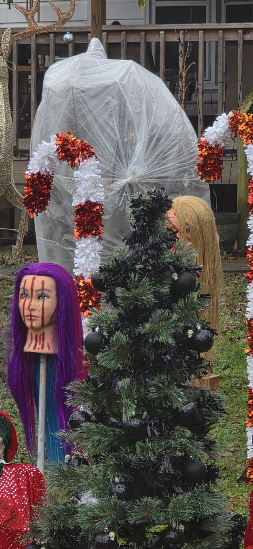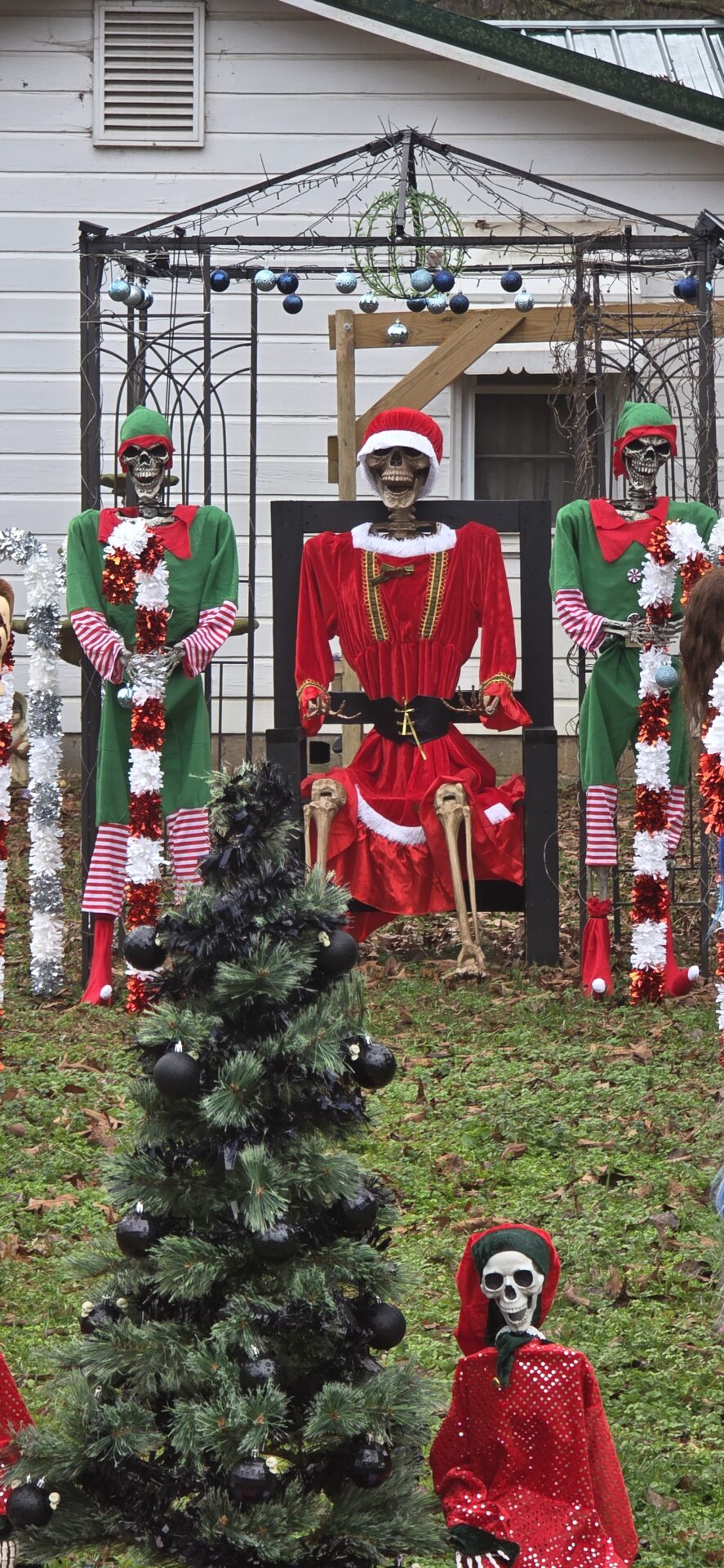 He explained that he typically puts up a large Halloween display each year and thought it would be fun to extend the Halloween theme into Christmas by incorporating some of his favorite décor elements into a holiday setting. Roberts said the idea was to mix the two holidays in a unique way.
