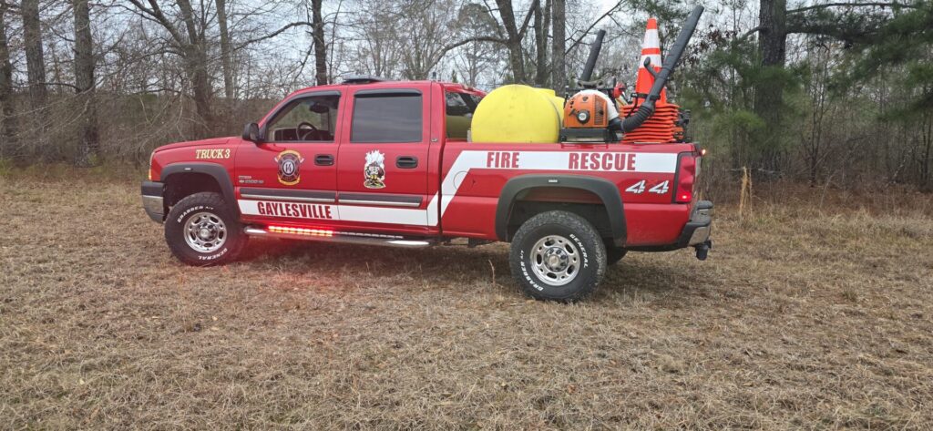 GAYLESVILLE — Gaylesville firefighters responded Tuesday morning to a grass and woods fire that spread from a previously reported controlled burn near County Road 115.