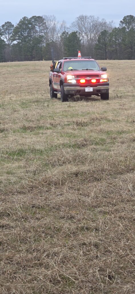 The fire burned into the edge of approximately 300 yards of wood line before crews stopped its forward progress. No injuries were reported, and no damage was reported beyond burned grass, fields, and wooded property.