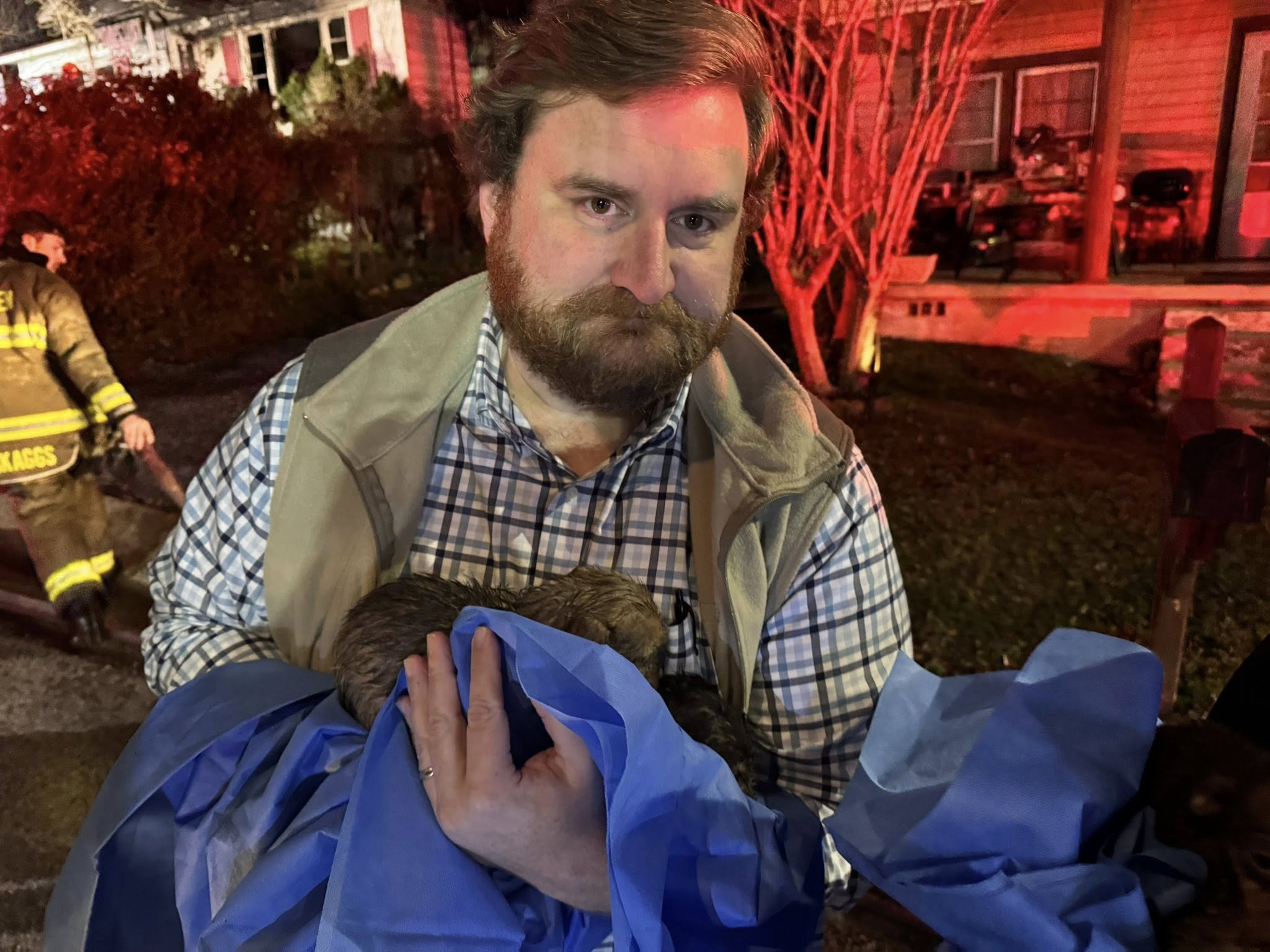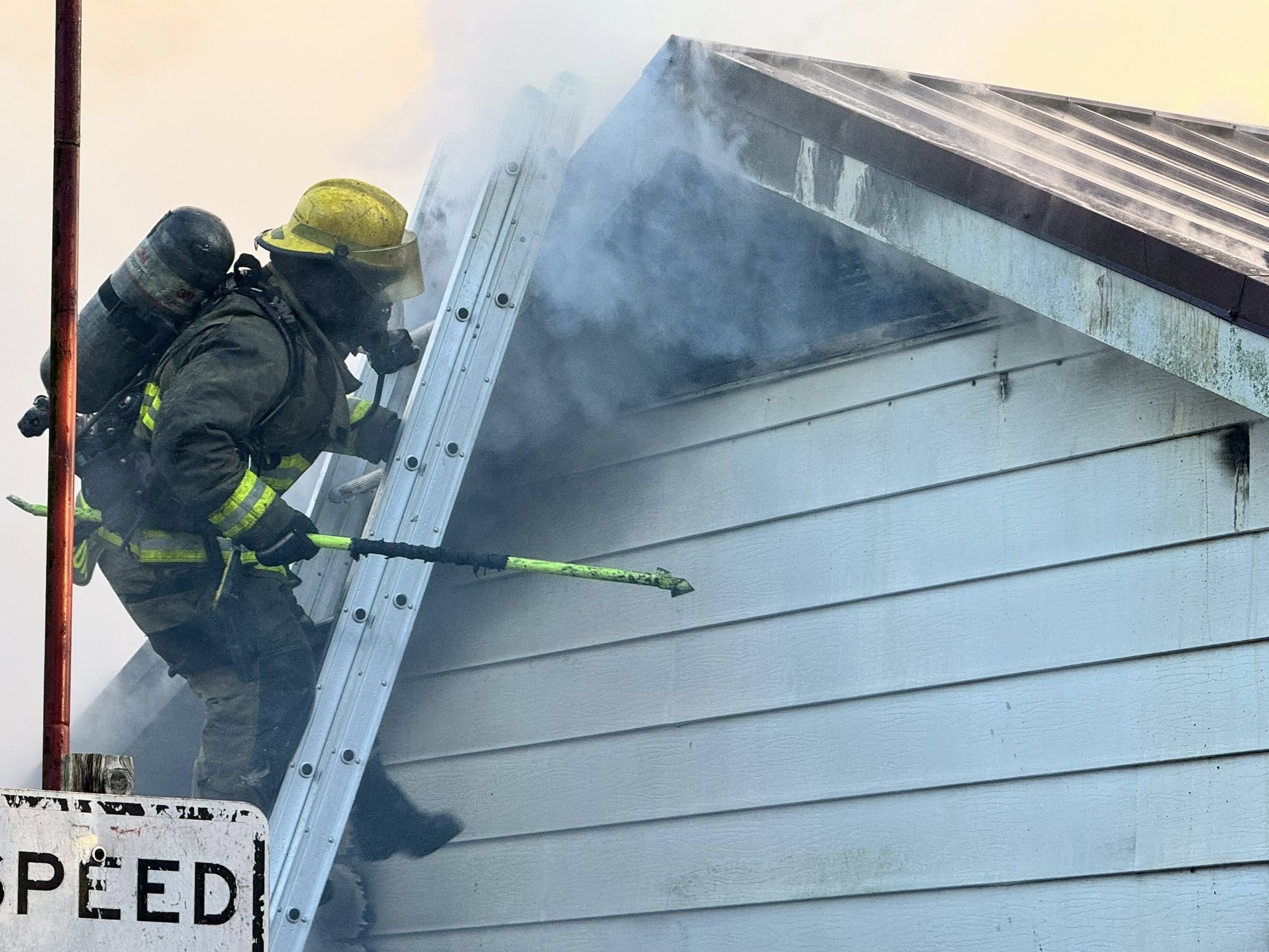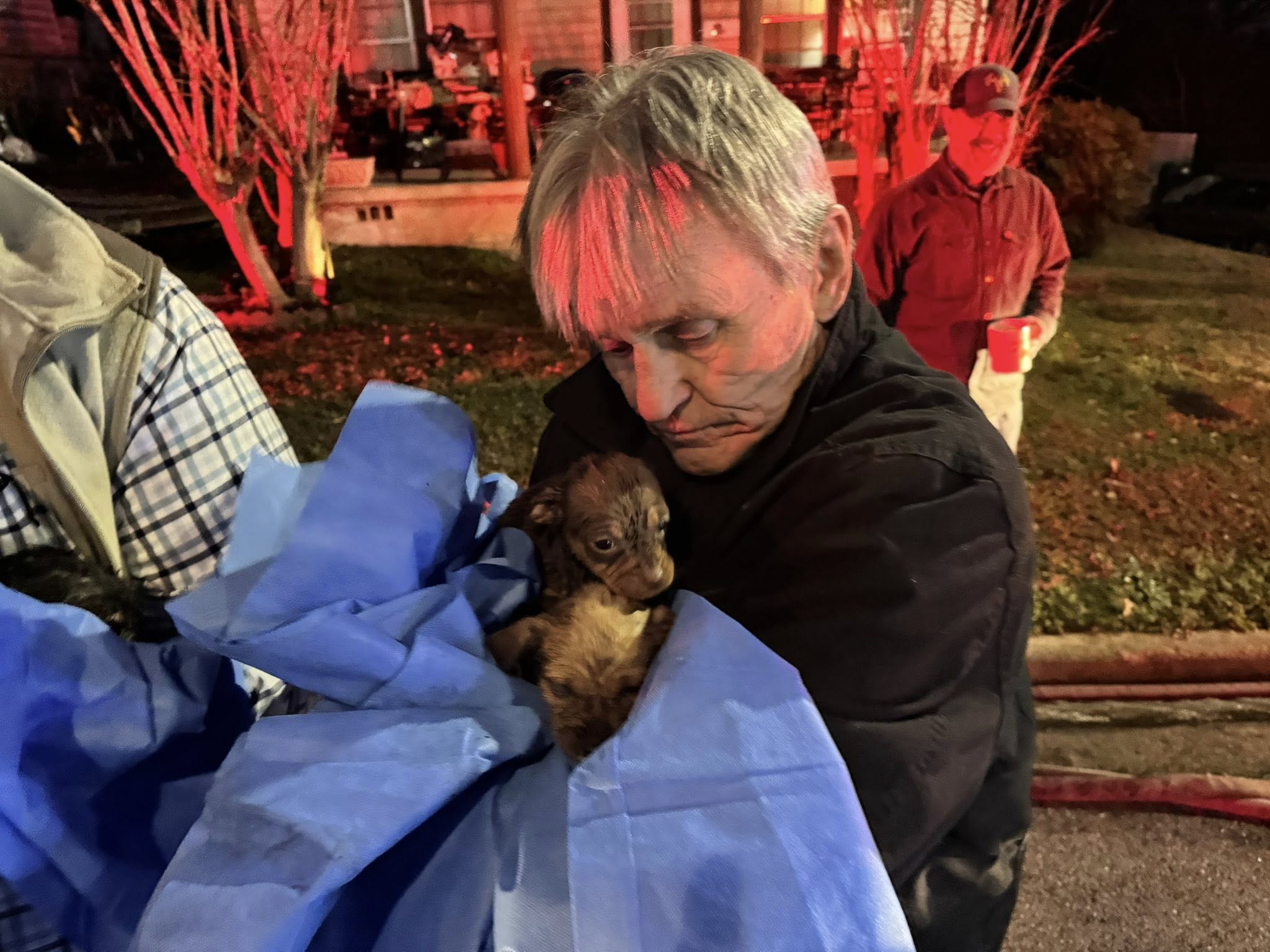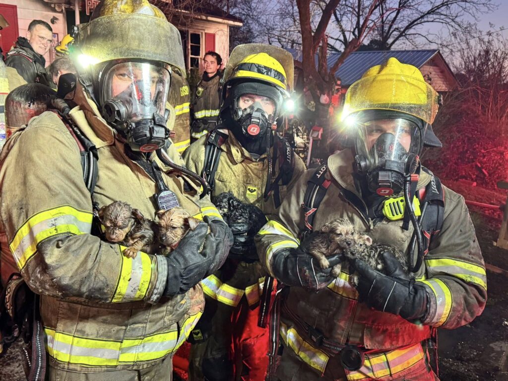 Firefighters from Quint 4, Engine 1, Rescue 1, Engine 5, Engine 7, EMS 1, along with the department’s Training Officer, two Fire Marshals, Battalion 2, and the Fire Chief worked swiftly to suppress the fire and secure the scene. During the operation, crews located and rescued five six-week-old puppies from inside the structure and safely returned them to their owners.