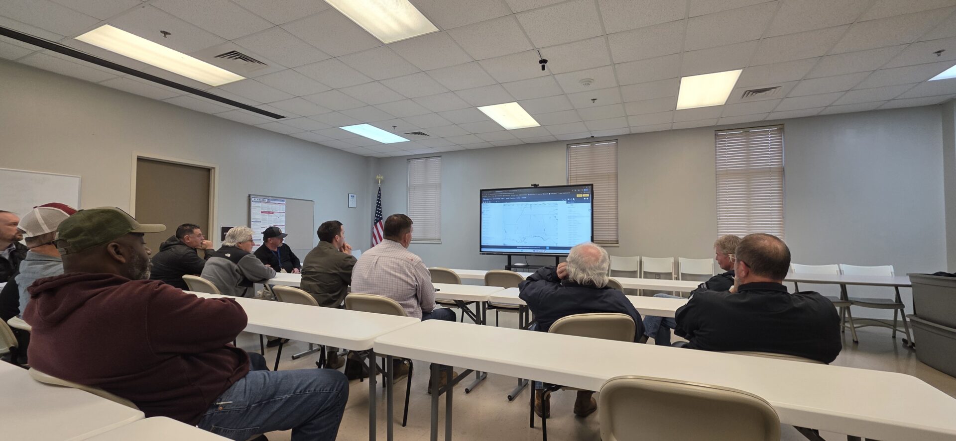 The meeting began with a live webinar briefing from the National Weather Service in Birmingham, where forecasters provided updated guidance on the approaching system. According to the NWS, recent forecast models show a decreasing trend in freezing rain and ice potential across much of Central Alabama, continuing an improving pattern that had already begun to emerge in earlier forecasts.