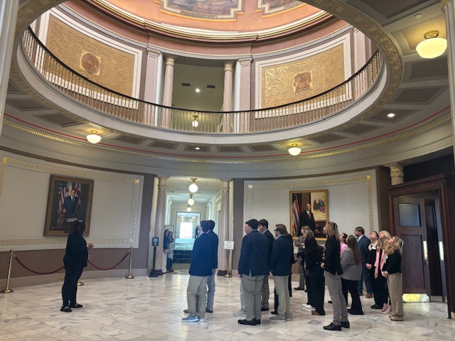 During the visit, the group toured the historic Capitol building and had the opportunity to meet several state leaders. Highlights included a photo opportunity with Governor Kay Ivey and a surprise meeting with Alabama State Treasurer Young Boozer. Students also spent time observing the legislative process from the House Gallery with Rep. Ginny Shaver and visited the Senate floor with Sen. Andrew Jones.