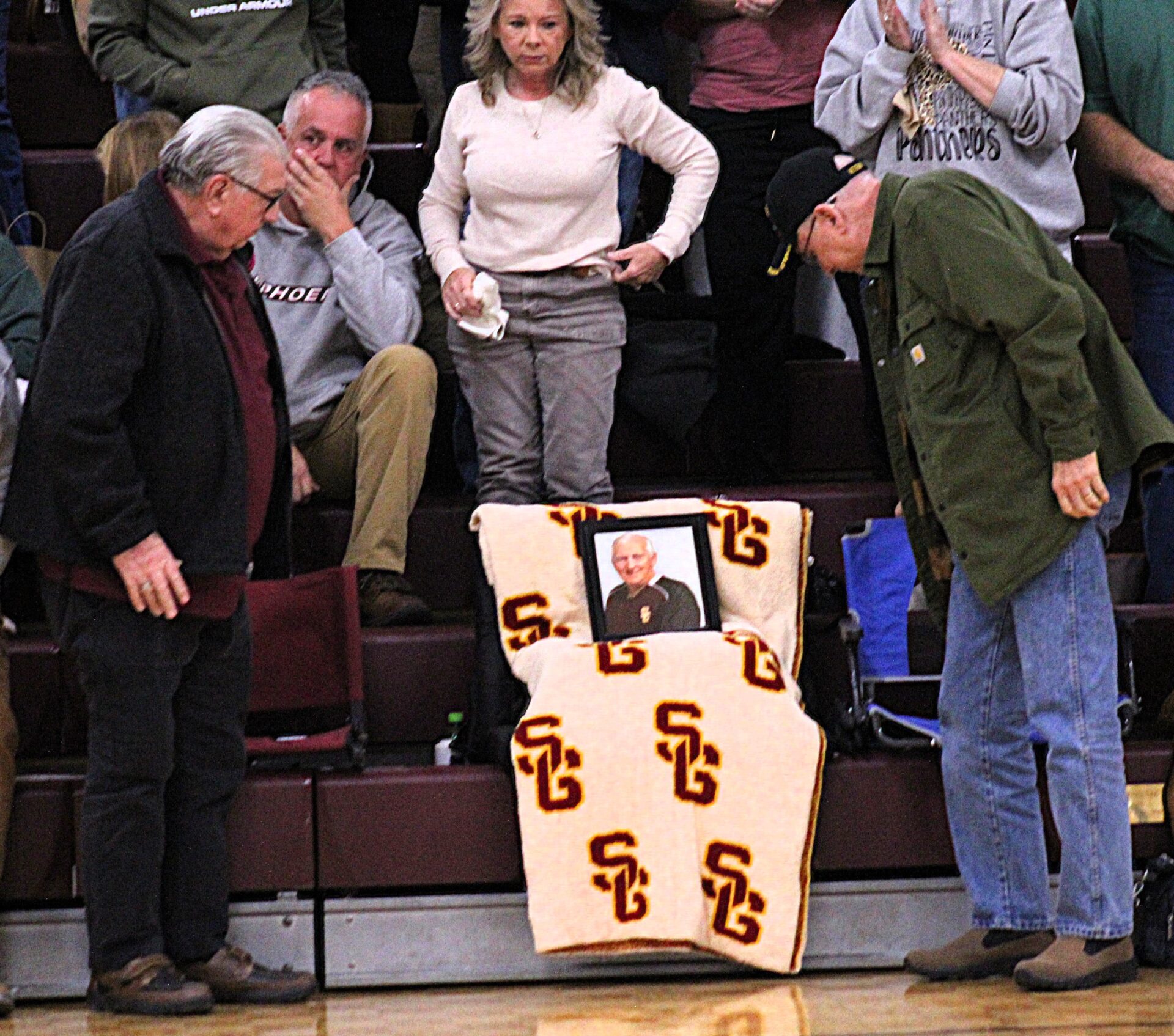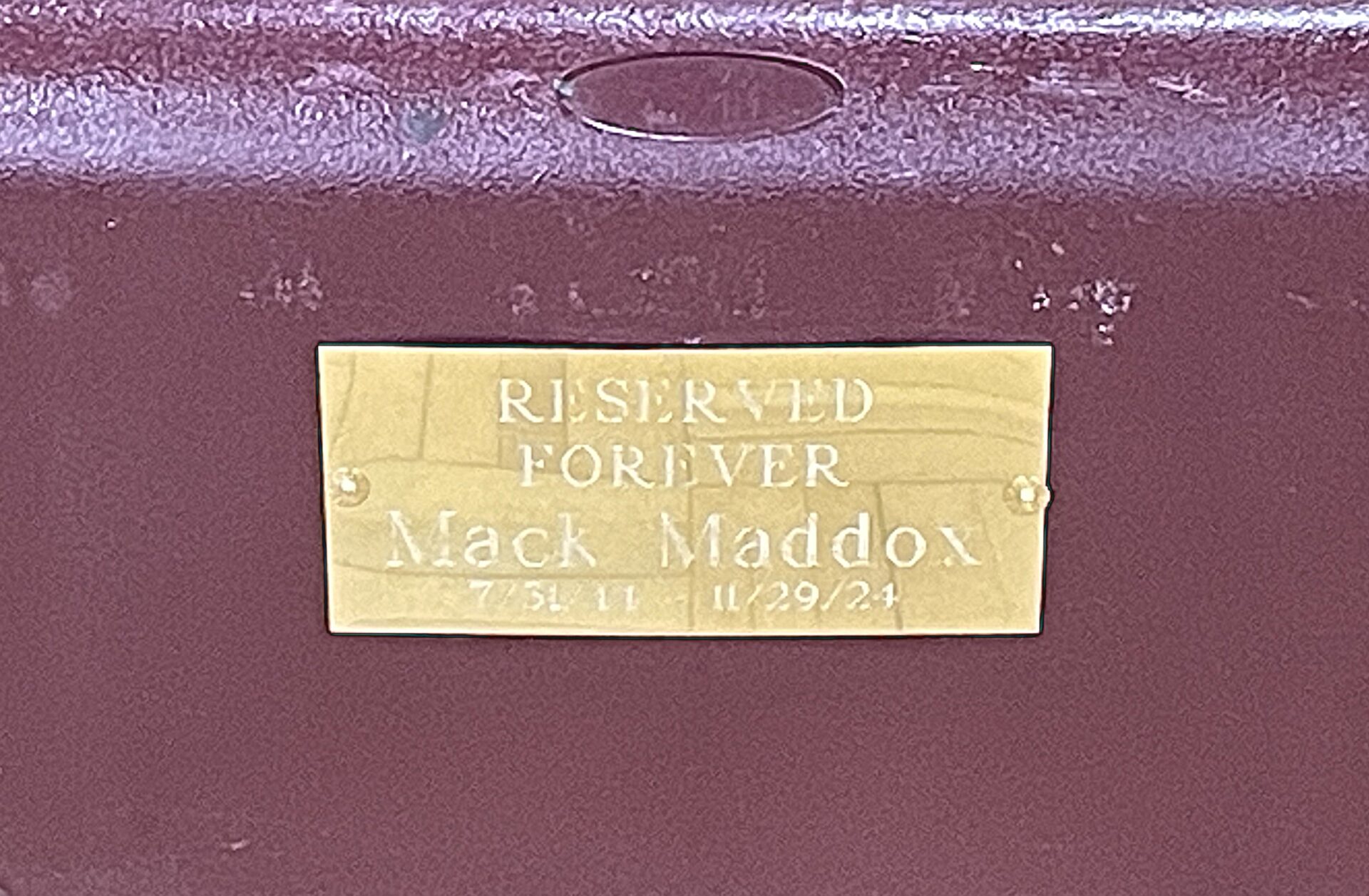 On Saturday, the Spring Garden community commemorated Mack’s memory by unveiling a plaque attached to his seat in the bleachers between the varsity girls and junior varsity boys games with Sand Rock. It reads “Reserved Forever, Mack Maddox, 7/31/44, 11/29/24”.