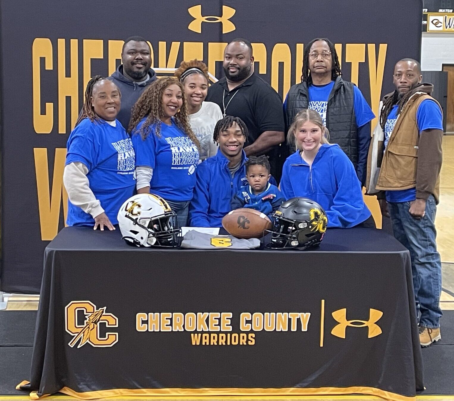After leading all rushers in Cherokee County with 2,255 yards on 278 carries with 22 touchdowns last season, the Hawks offered him a scholarship. Woods signed it on Wednesday in the school gym.