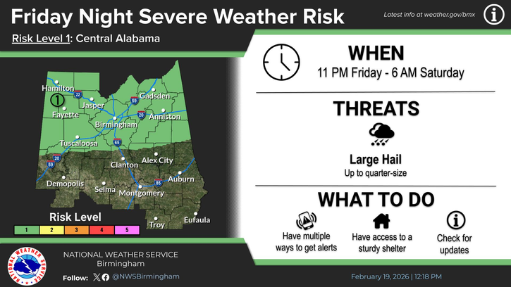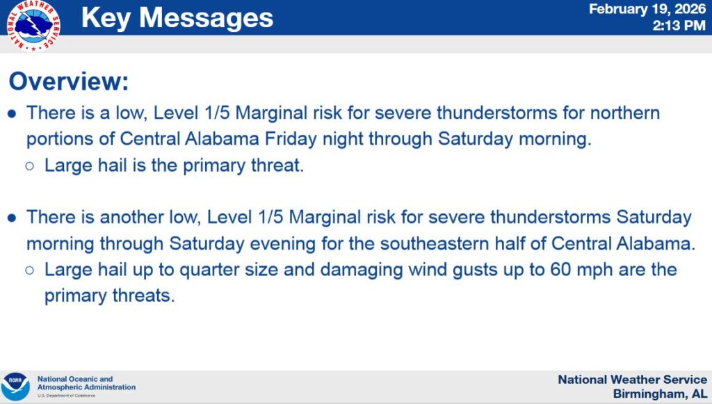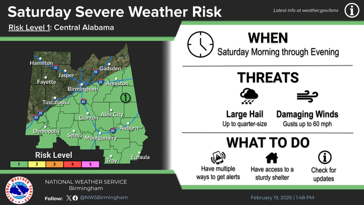 Severe Weather Risk Update (2:15pm 02/19/2026)