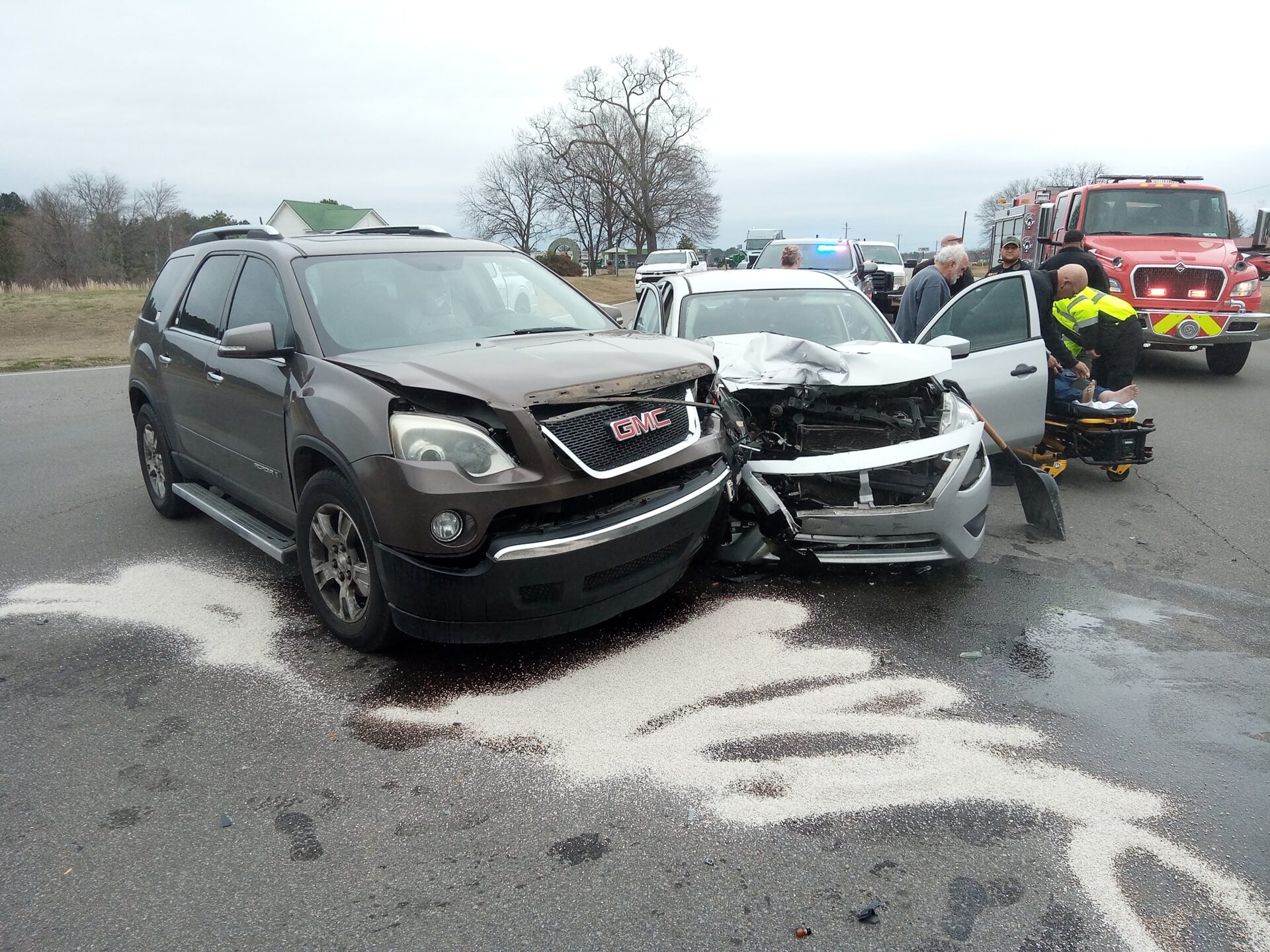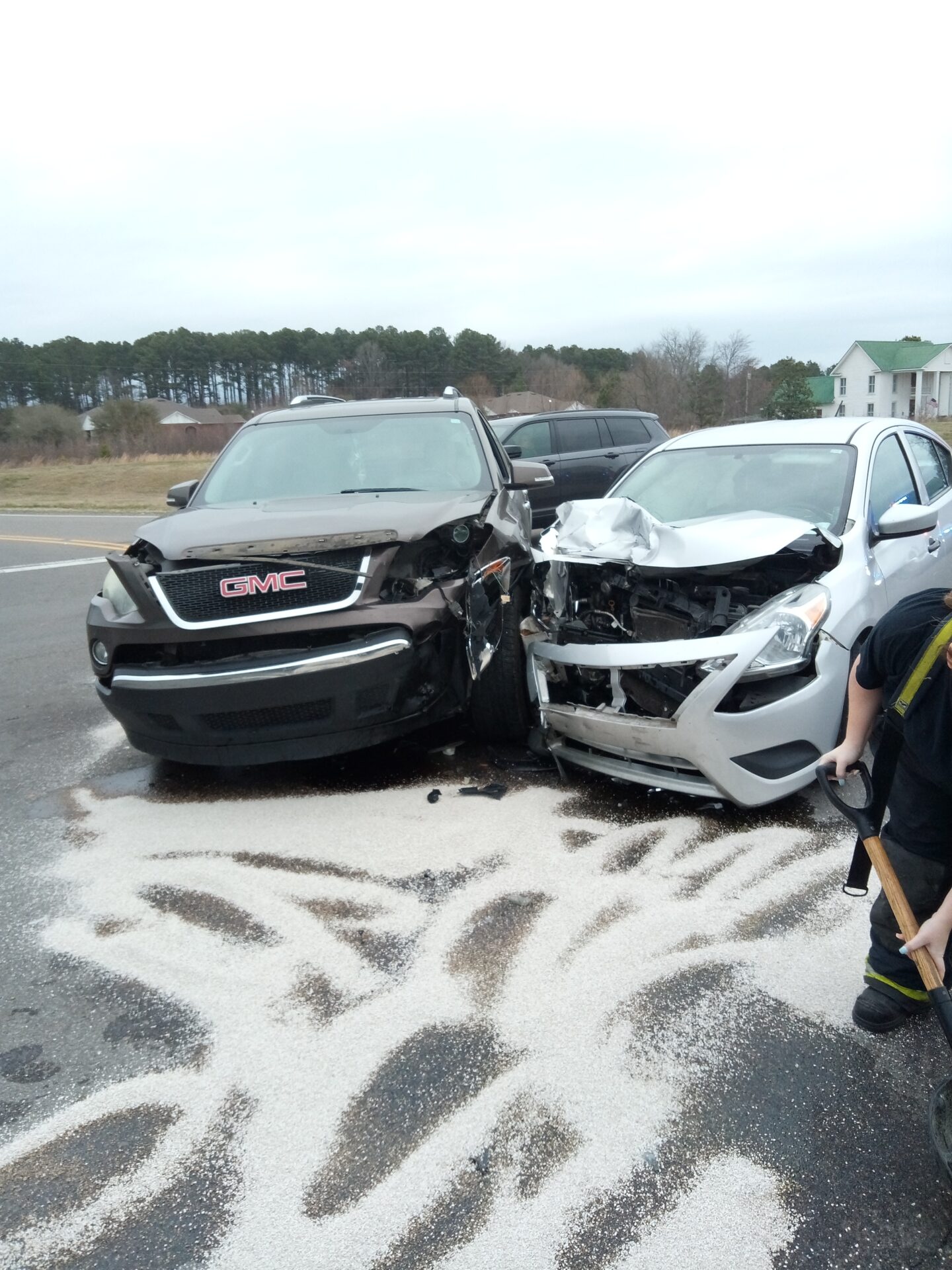 The crash involved a Nissan Versa and a GMC Acadia. One person was transported to a local hospital for treatment.