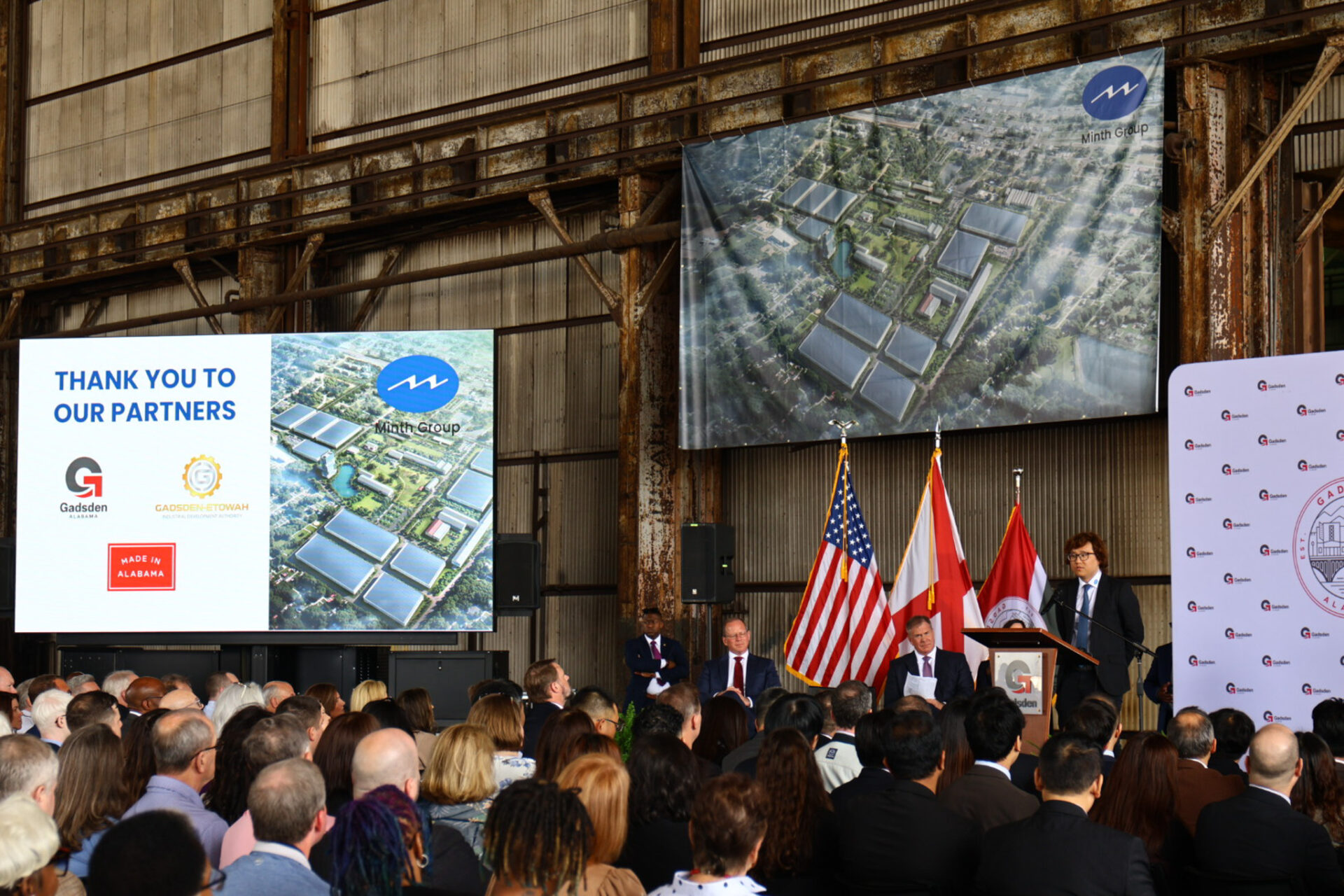 The announcement was made at the future site of the facility on a 400-acre brownfield property that previously housed Republic Steel and Gulf States Steel. The project will transform the former steelmaking site into Minth Group’s largest campus worldwide.