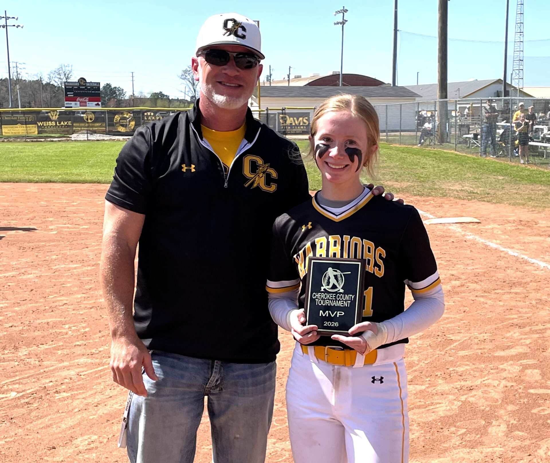 CENTRE – Cherokee County High School freshman Sydni Frost was walking in to the Lady Warriors’ softball field on Saturday morning and noticed the back of someone’s t-shirt. It was the team’s county softball tournament three-peat shirt from last year and it read “protect the tradition.”