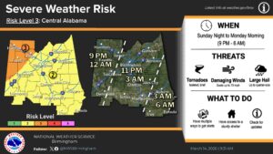 The National Weather Service in Birmingham has upgraded the Weather Threat across the area on Sunday night into Monday Morning.