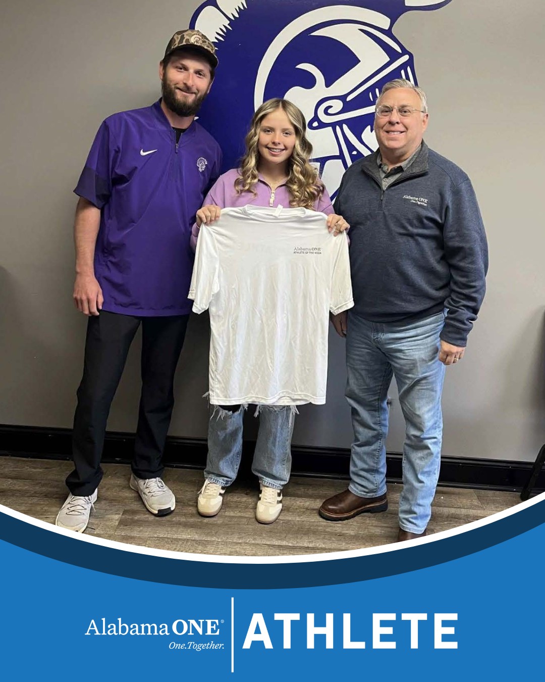 Pictured with McKenlee and Mark Gossett is Head Softball Coach at Gaylesville, Clay Joseph.