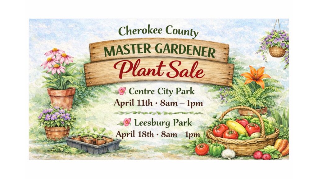 Alabama Master Gardener’s spring sale will feature flower plants, patio pots, succulent dish gardens, hanging baskets, patio and yard art, and vegetable plants. Bring your favorite pot for a designer session with the Master Gardeners. Purchase flowers plus $5 for soil and create your pot.