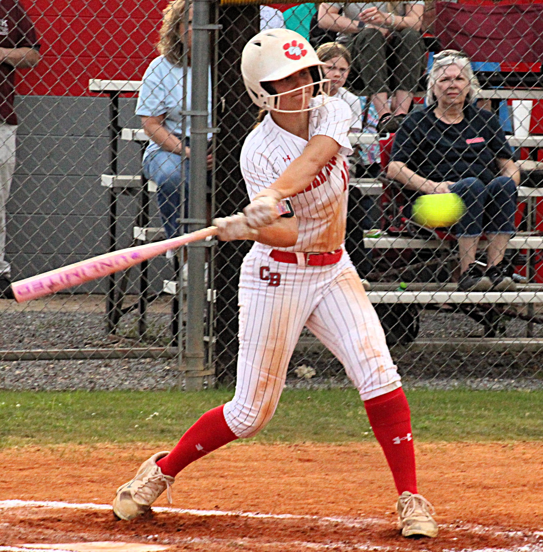Cedar Bluff’s Kylie Vadon connects on a hit against Sand Rock on Thursday; Photo by Shannon Fagan.