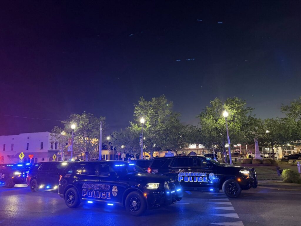 JACKSONVILLE — A heavy police presence was reported around 8 p.m. Friday night in the Jacksonville Square area following a police pursuit that ended in a crash involving officers and the suspect.