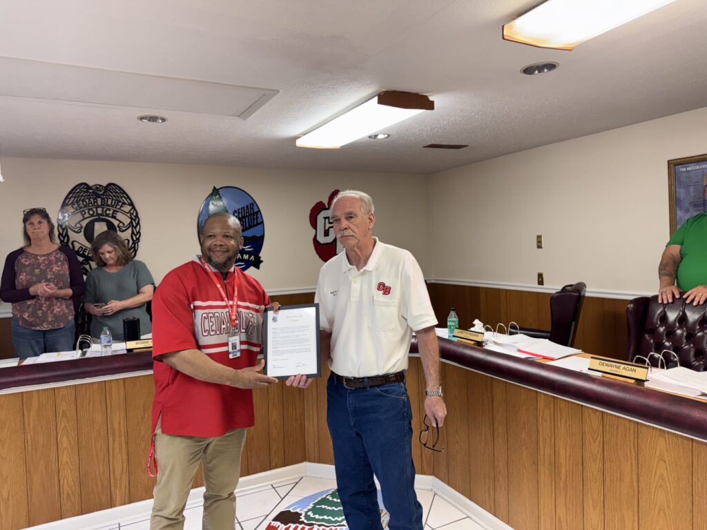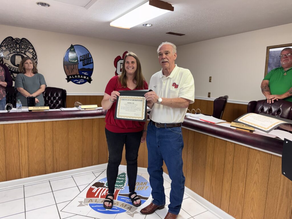 During the meeting, Mayor Bill Warren emphasized the importance of Cedar Bluff schools to the town’s future. He praised the school system’s leadership, teachers, and staff for providing students with an excellent education, while also recognizing coaches for instilling dedication, teamwork and discipline. Warren noted that the school system represents more than just a building, calling it a reflection of the people who make up the community.