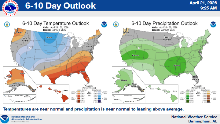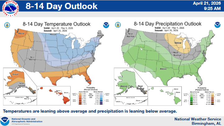 The National Weather Service in Birmingham reports that chances for showers and thunderstorms will return this weekend and persist into next week. While the rainfall may provide some temporary relief, forecasters caution it will not be sufficient to fully alleviate the widespread drought conditions.