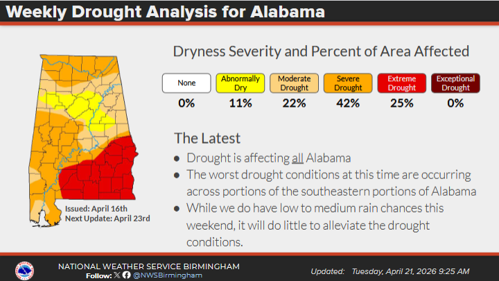 Drought Persists Across Alabama; Severe Weather Risk Expected Early Next Week