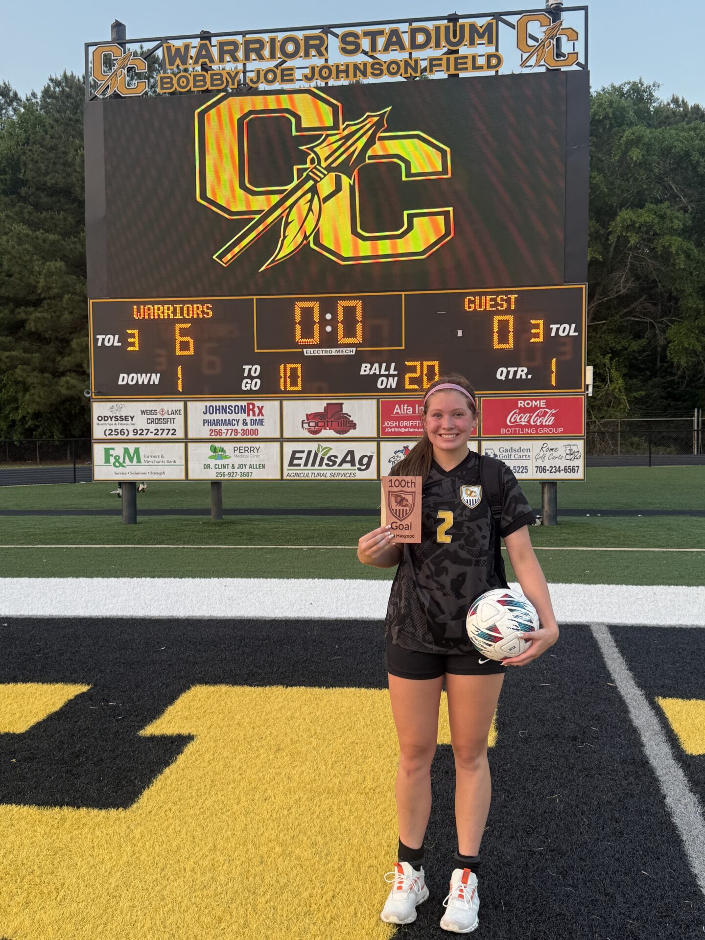 Haygood is the first Cherokee County High School soccer player to ever score 100 career goals. She is also the all-time goal scorer for Cherokee County in both the boys and girls; ranks. Haygood has scored 39 goals this season.