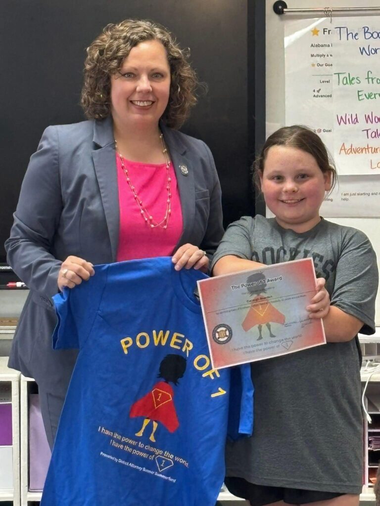 District Attorney Summerford presented the award and also spoke to students during the recognition, encouraging the 4th grade class to carry those same values into the summer months. She challenged students to continue practicing kindness and positivity, noting that these qualities help build strong leaders and role models when they return to school in the fall.