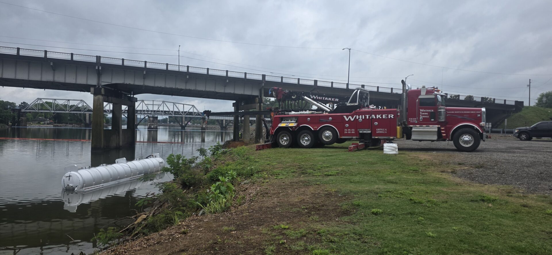 Chief Brown confirmed the tank portion of the truck was empty, and that the greatest environmental threat came from diesel fuel and oil leaking from the vehicle. A visible fuel sheen and an odor of fuel were present when WEIS arrived on scene. Etowah County EMA Director Jim Slick estimated the vehicle could have been carrying about 200 gallons of diesel. Responders quickly deployed booms in the water to limit the spread of fuel and oil and to prevent contamination from traveling further downstream.