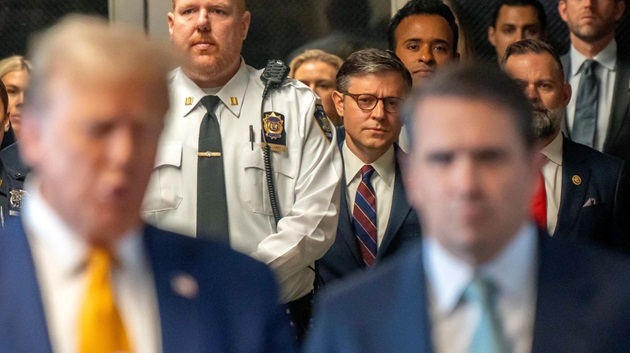 Speaker Johnson defends Trump outside ‘sham’ New York trial